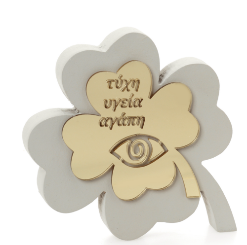Επιτραπέζιο Γούρι σε Σχήμα Τριφύλλι σε Λευκό και Χρυσές Λεπτομέρειες